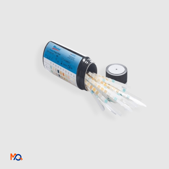 - Bandelettes réactives d’analyse urinaire colorimétriques plastiques rigides sur lesquelles sont fixées plusieurs zones de réactifs