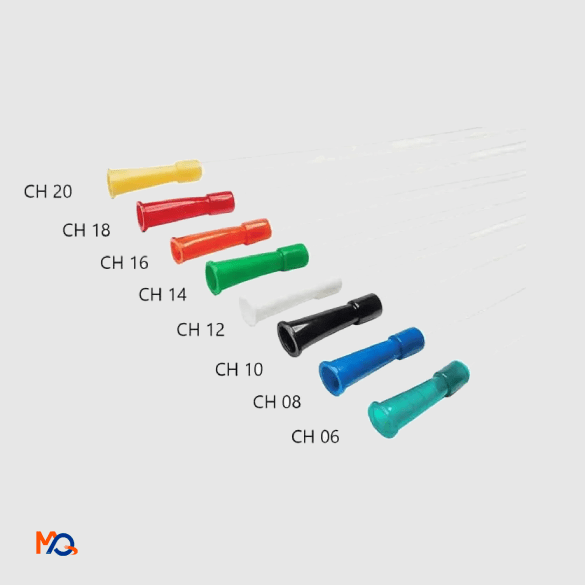 - L’extrémité du cathéter est arrondie arrondie atraumatique pour une irritation minimale des muqueuses et l’autre un embouts en entonnoir avec code couleur